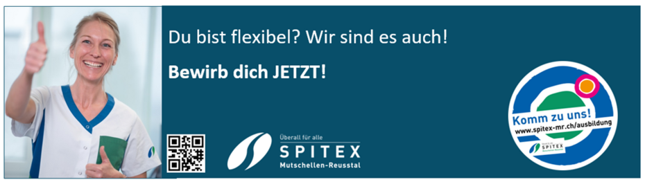 Sende deine Bewerbung an: bewerbung@spitex-mr.ch. Für Fragen steht dir Miriam Salierno, Stv. Bereichsleiterin Kerndienste, unter 079 885 53 29 gerne zur Verfügung.