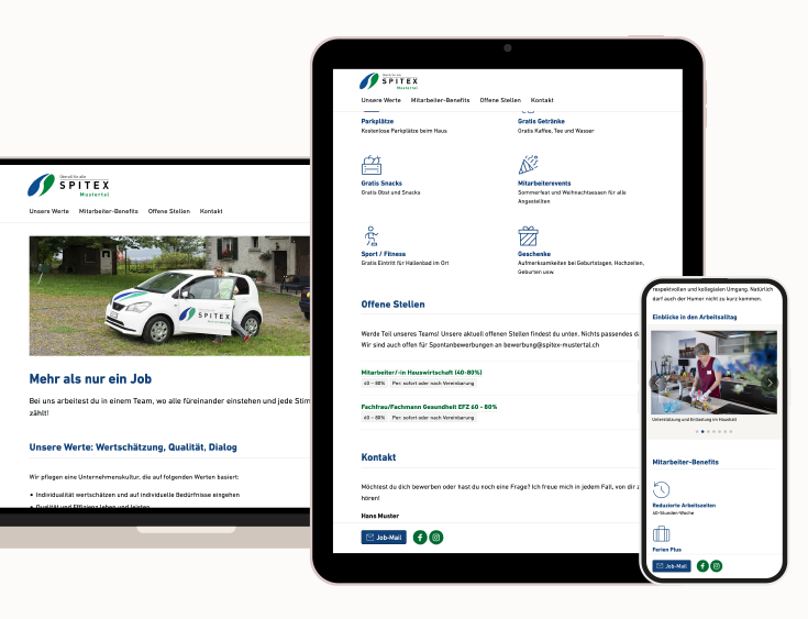 Auf spitexjobs.ch erreichen Sie über 250’000 Menschen jeden Monat. Mit der neuen Funktion EmployerBoard können Sie direkt auf unserem Portal Ihre Institution mit allen Vorzügen präsentieren und direkte Kontaktmöglichkeiten anbieten.